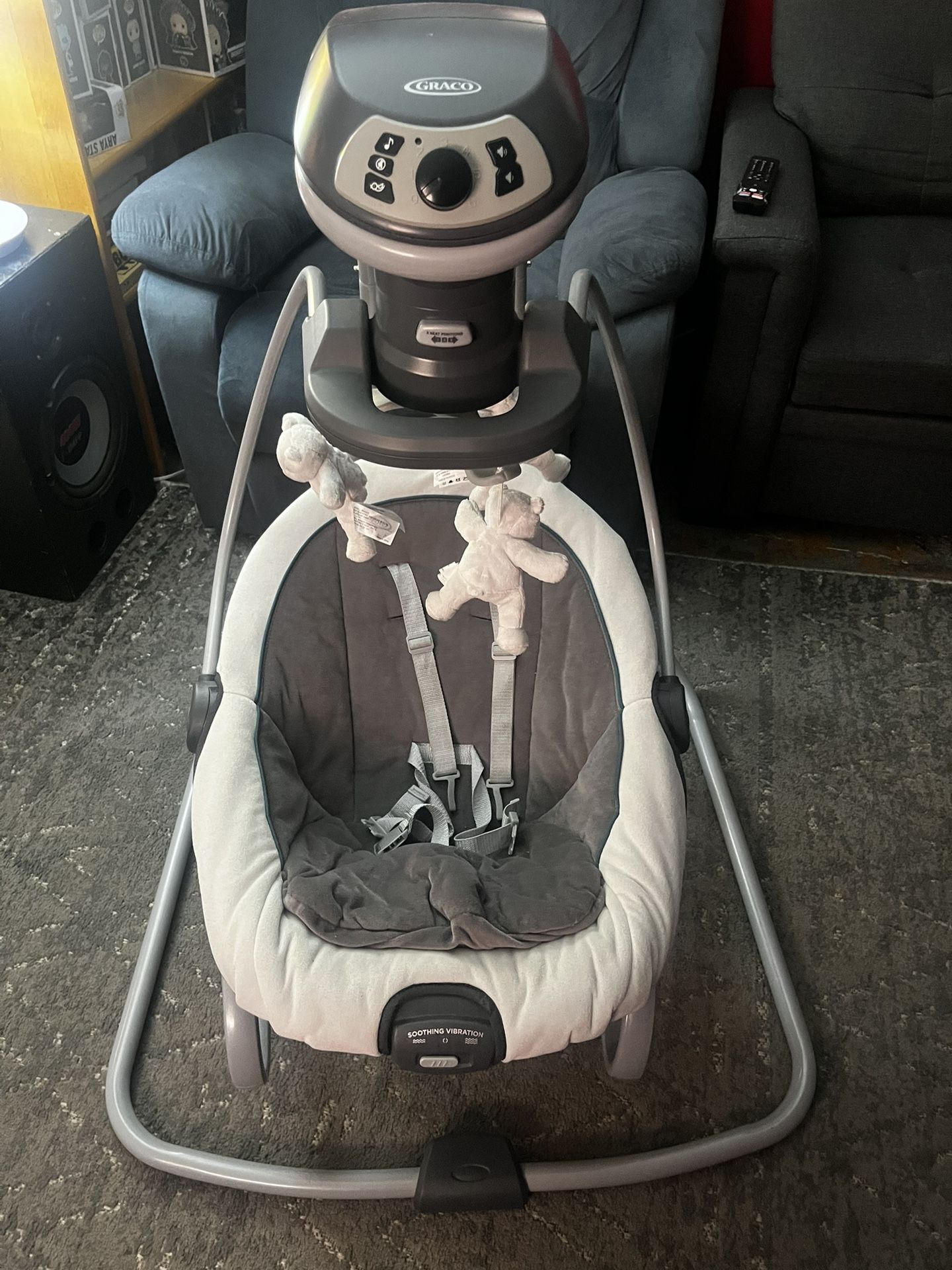 BEST OFFER !!!!!!!! Only used for a couple of months !! Plays music , has a speed for swinging Perfect condition! Drop off today for $$ extra