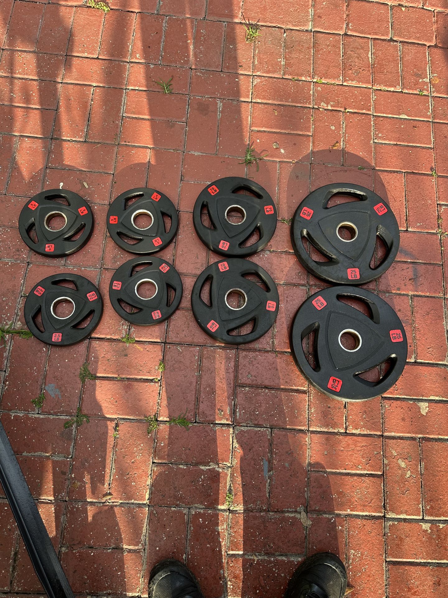 Tengo estas pesas en venta haga su oferta tengo varias mancuernas con su ract varios platos 4 de 25 libras , 10 platos de 10 libras , 12 de 5 libras y 2 de 2.5 libras hágame una oferta razonable o hago cambio con algo de su mismo valor juego de punto rojo para AR 15 electric scooter o bisicleta sistema de audio para tv etc