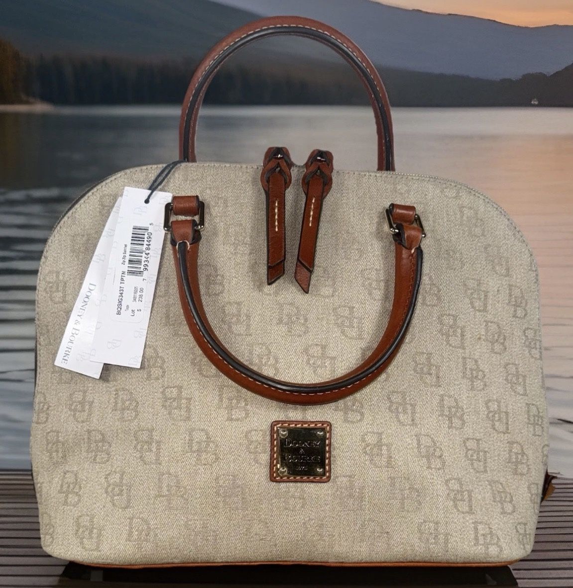Dooney & Bourke Beige Canvas Domed Zip Zip Satchel Taupe Bag NWT No Strap