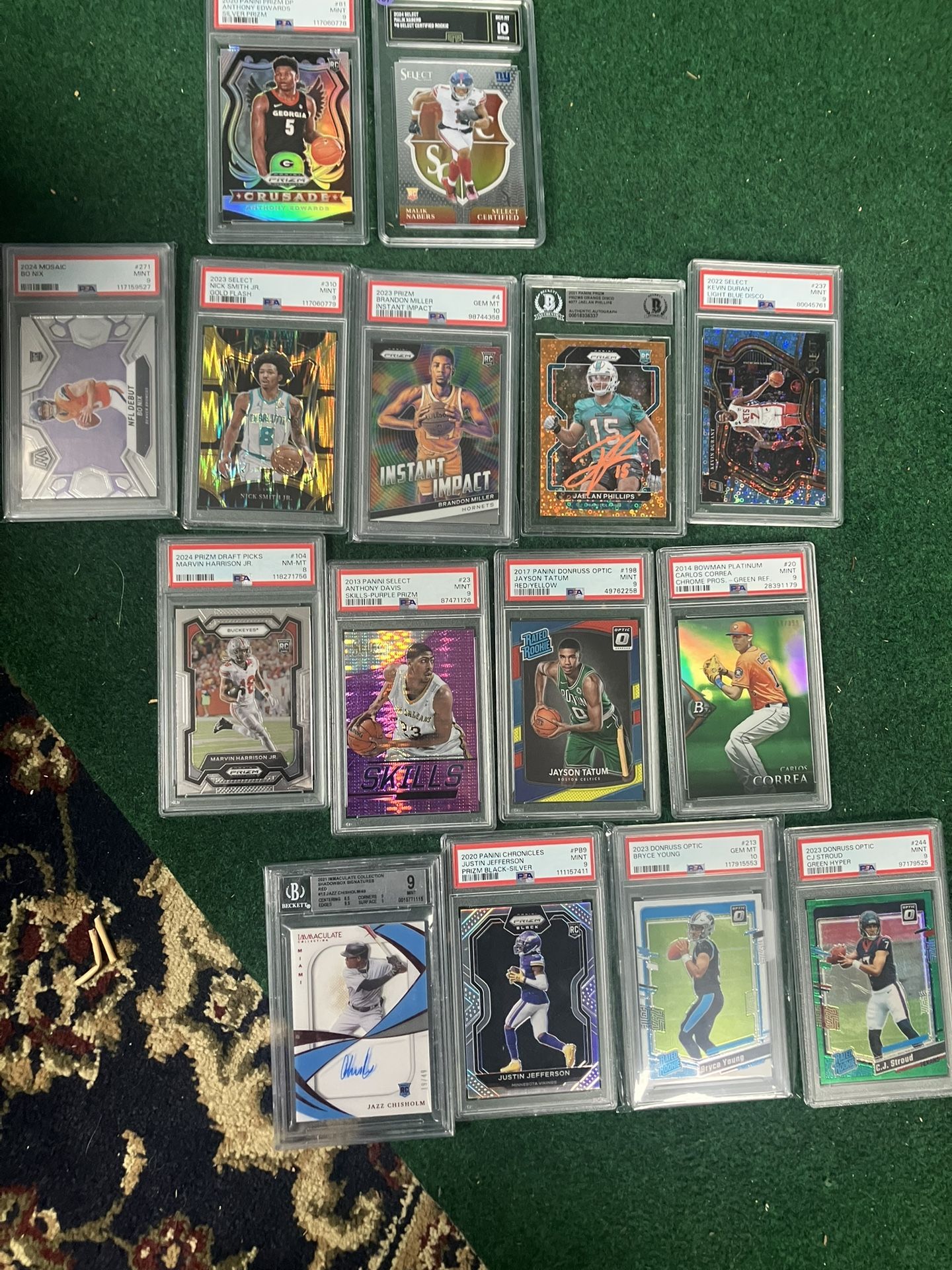Variety listing will benefit to read description large collection so check out images raw slabbed collection over the mlb nba nfl misc categories Yankees Rams Dodgers Lakers Vikings Giants Eagles Etc Check out images and message me about what card or specific cards you are interested in