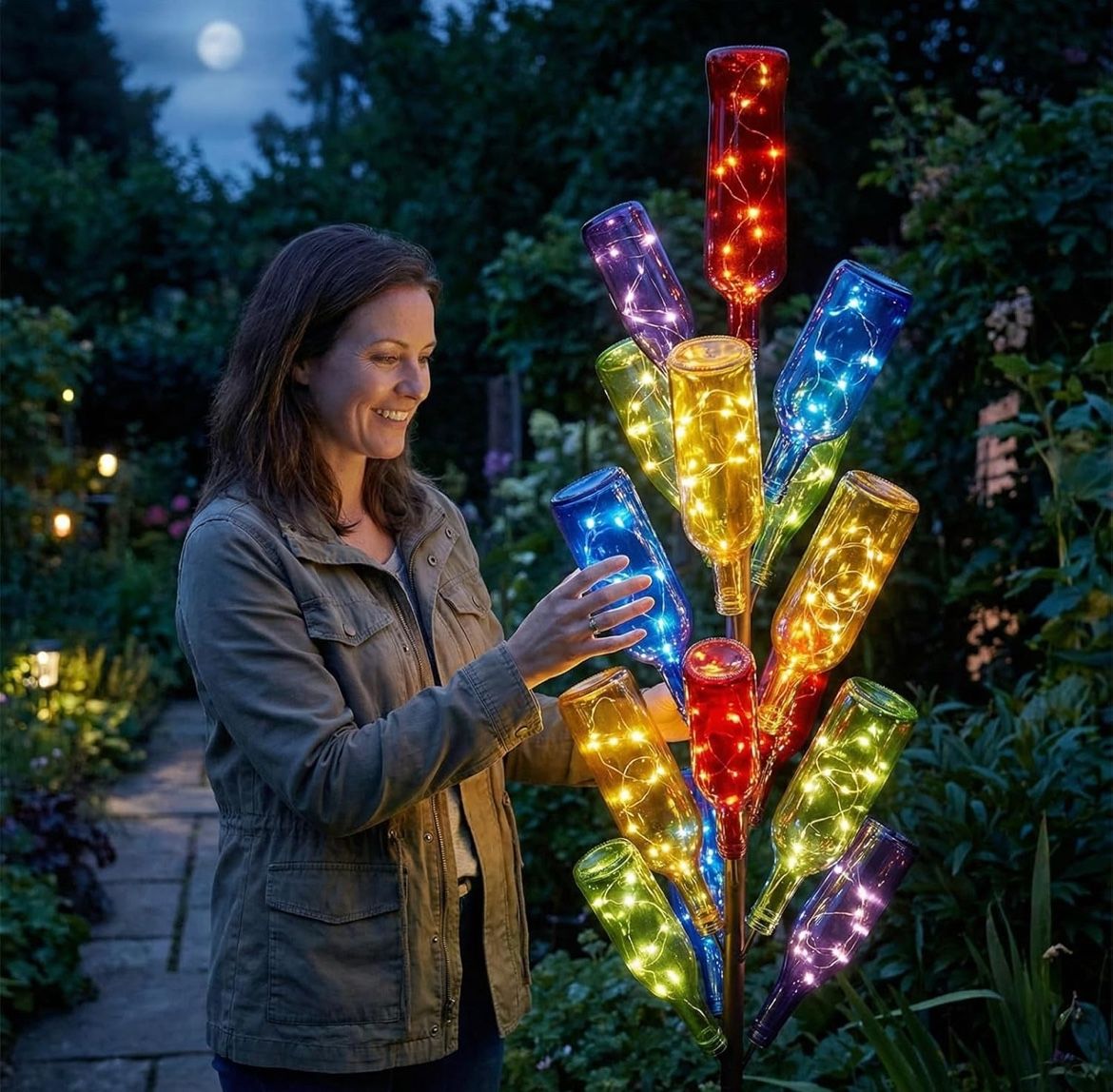 12 Pcs Colored Glass Bottles Colorful Empty Wine Bottles Decorative Glass Bottle for Bottle Tree Garden Yard Outdoor Home Decor(Dark Rainbow Color,Cyl