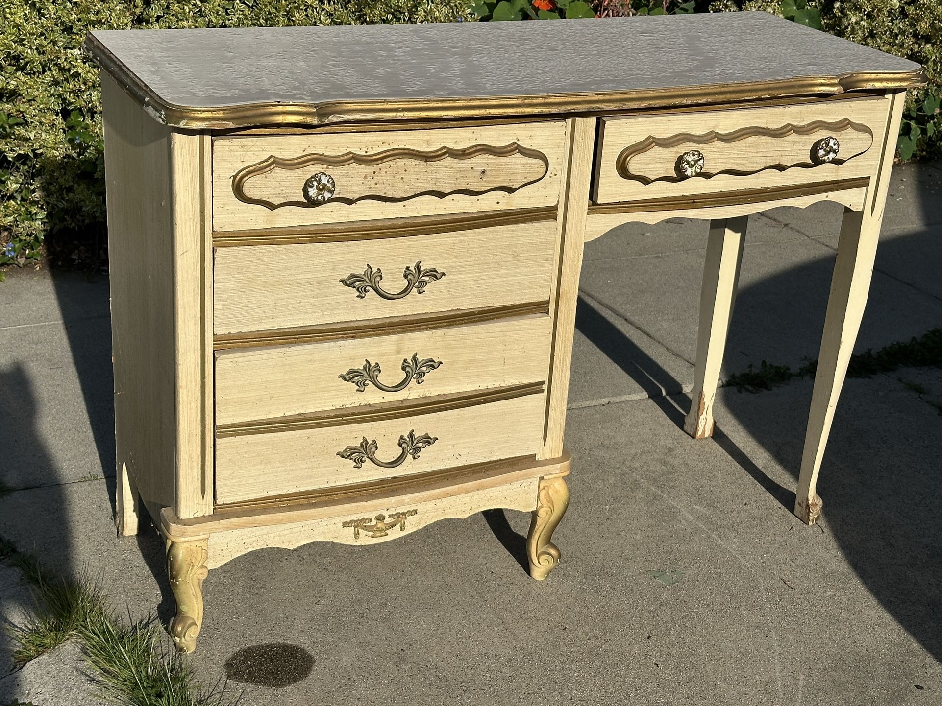 Curb Alert Elegant vintage wooden desk with ornate handles and detailing. 849-851 S Curson