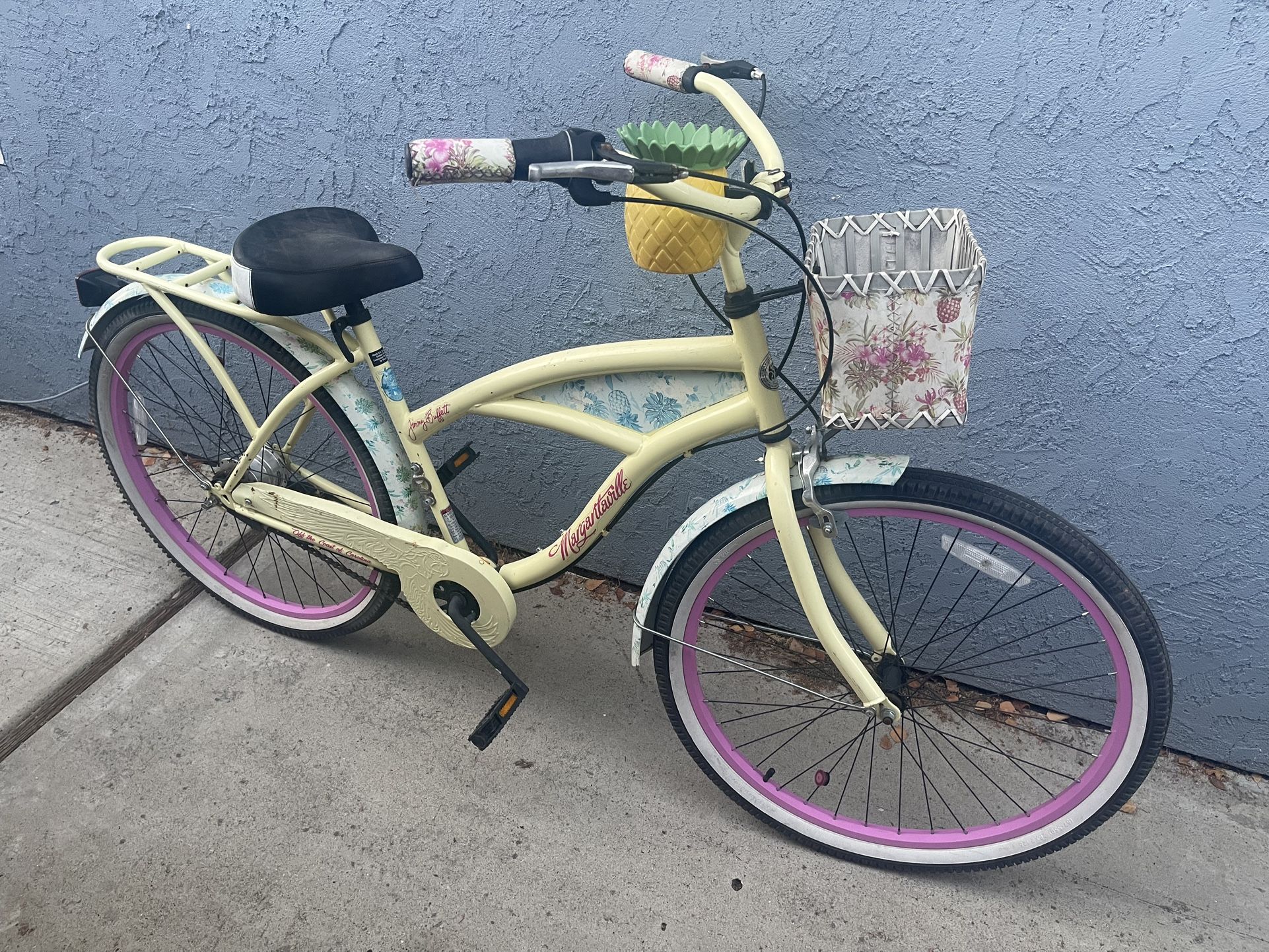 Kent 26-inch Margaritaville 3-Speed Women's Cruiser Bike in yellow All sales are AS-IS, WHERE-IS Delivery available for extra charge Entrega disponible por un cargo adicional Payments are flexible! Major credit cards, Zelle, and Venmo are accepted. Pagos flexibles! Se aceptan las principales tarjetas de crédito, Zelle y Venmo.