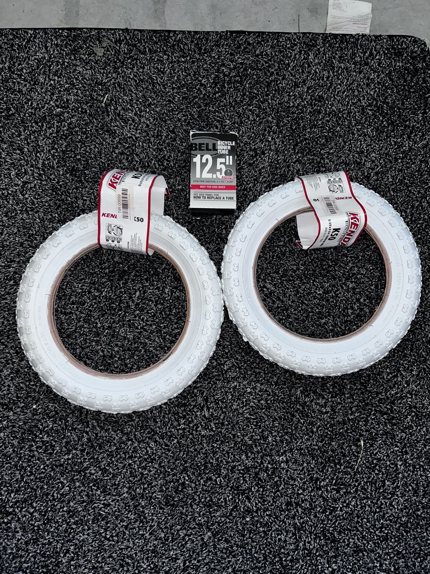 Two brand new KENDA bicycle tires K 50 along with one brand new bicycle inner tube I am selling both tires and one innertube altogether. I am in Elk Grove if you’re interested.