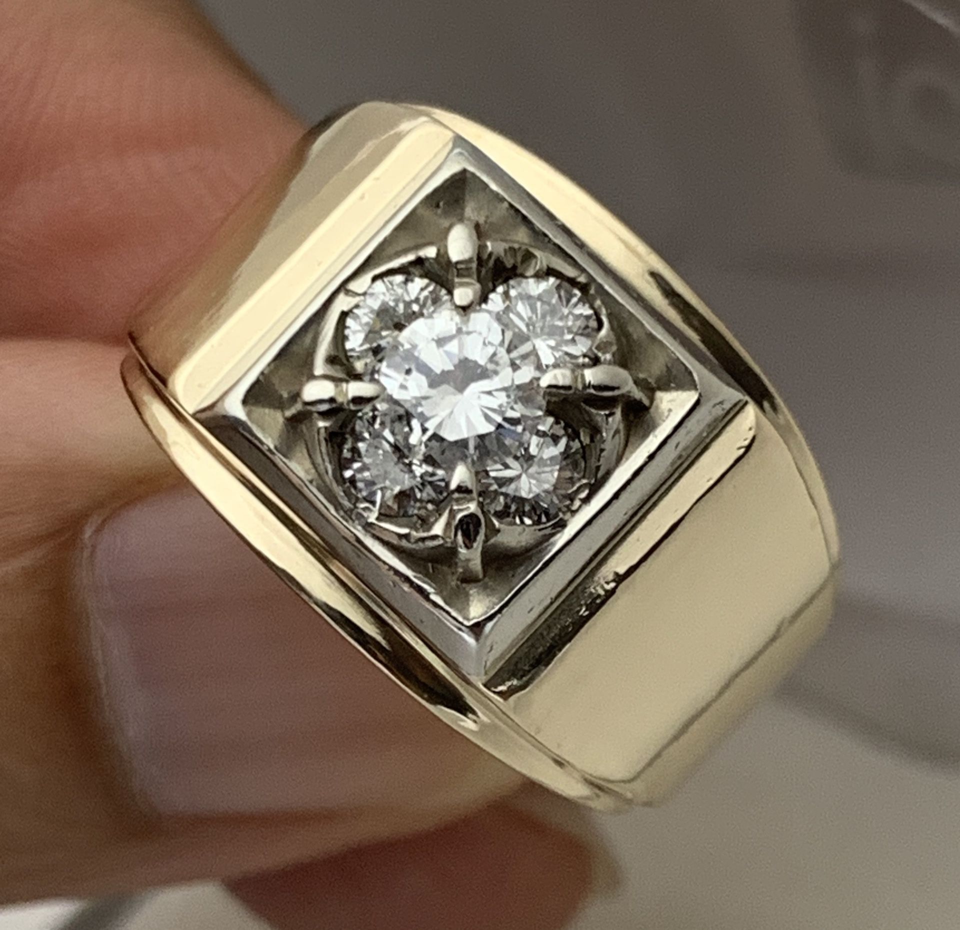 1.0Ct 100%Natural Diamond 14K Gold Vintage Cluster Men's Ring ILLUSION EFFECT