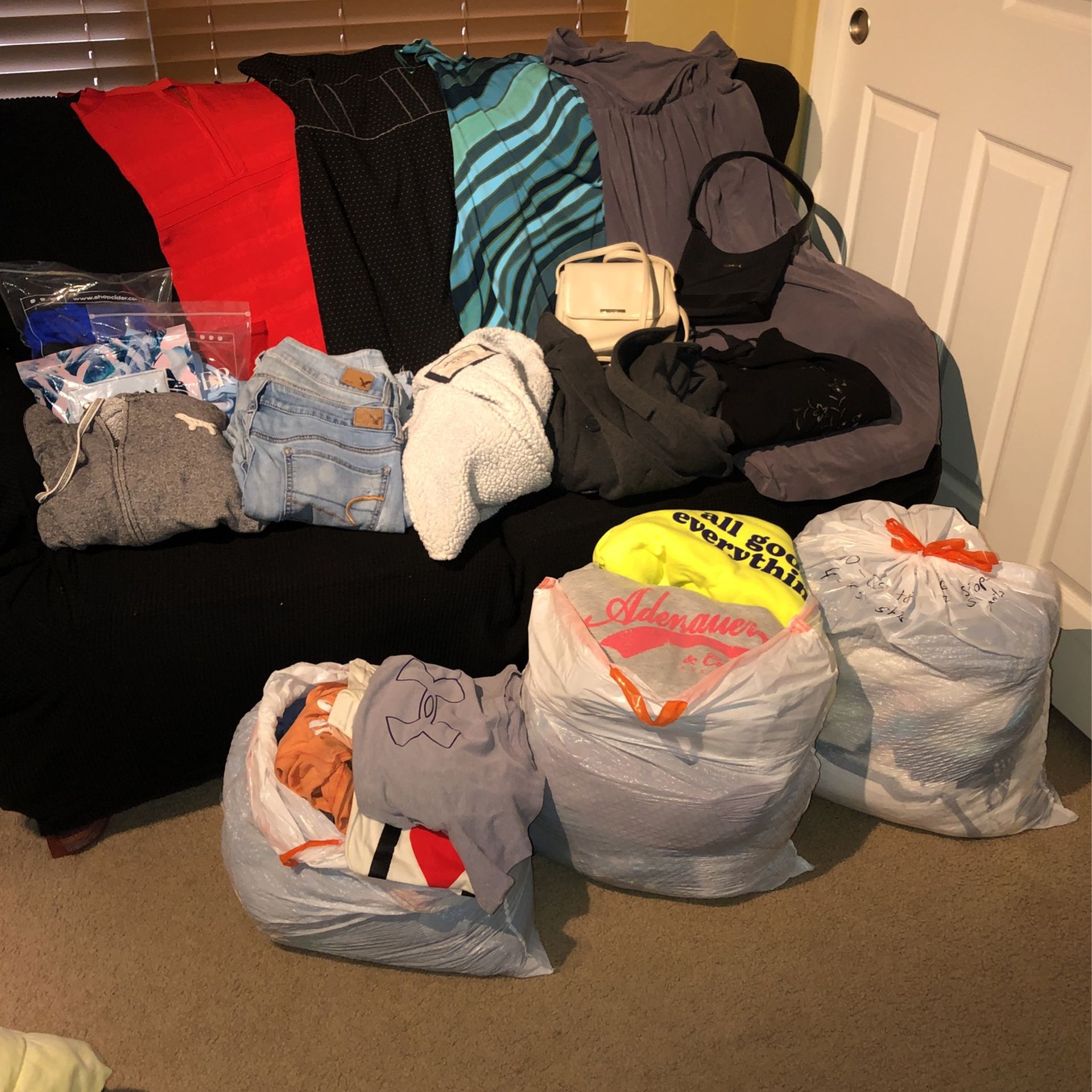 T-shirts Hoodies Dresses Bathing Suits Pants, sweatpants Two jackets Size XS, S and some M pick up in Surprise