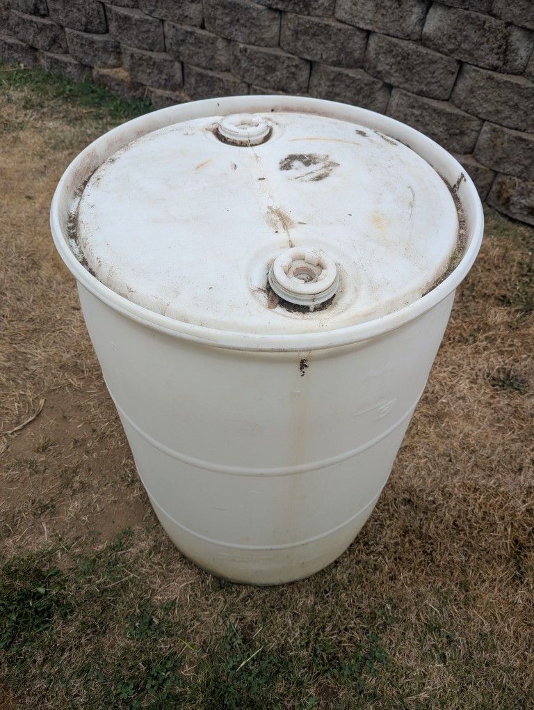 Selling one 55 gallon plastic drum barrel with a lid. Asking $35 or best offer