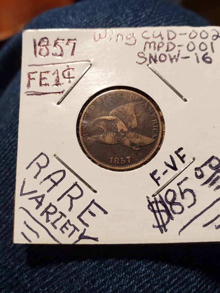 ECBSX160 RARE VARIETY 1857 FLYING EAGLE PENNY WING CUD SNOW-16 HARD2FIND
