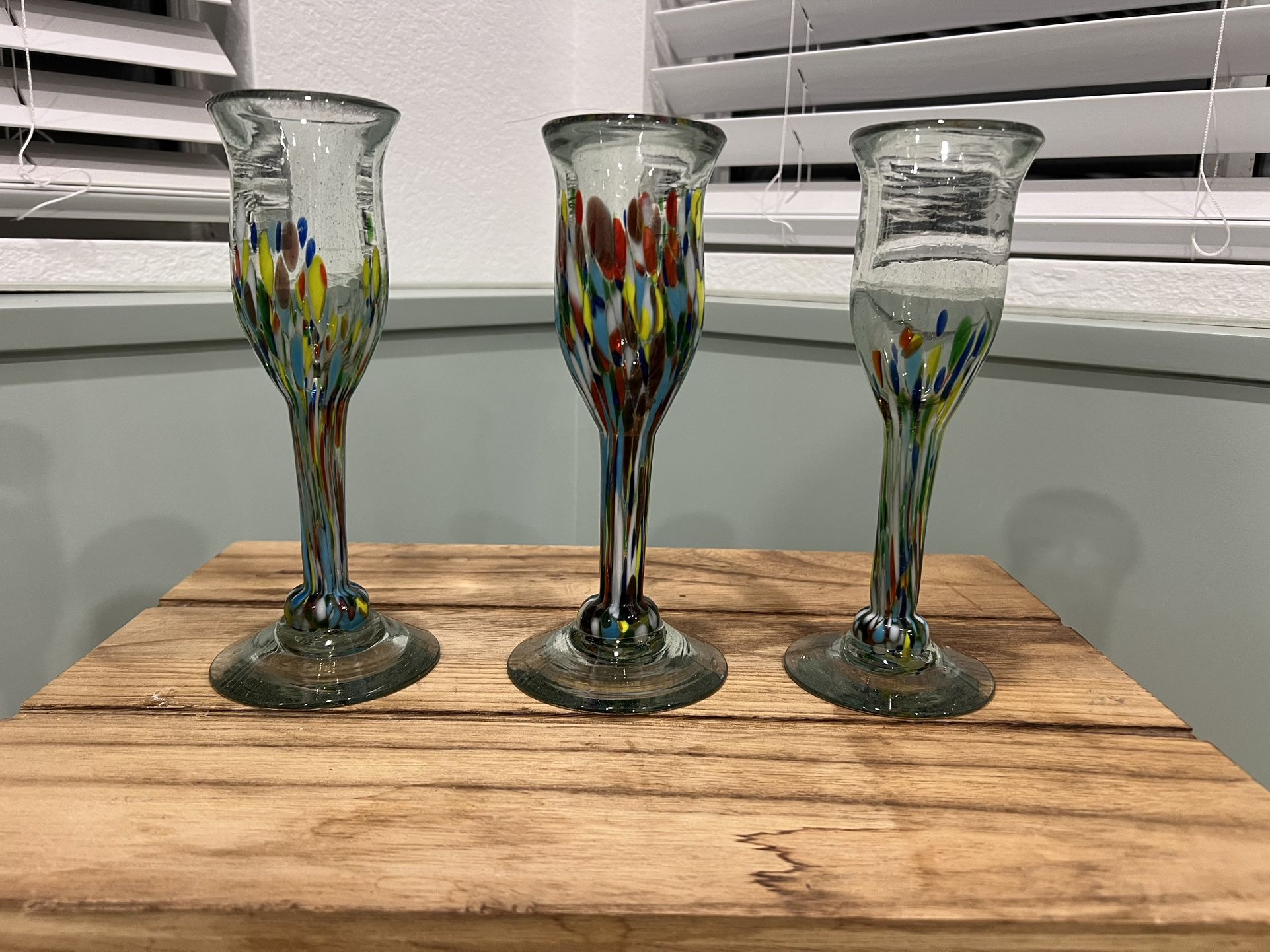 Traditional Mexican Blown Glass Hand Made Colorful Champagne glasses 3 pcs