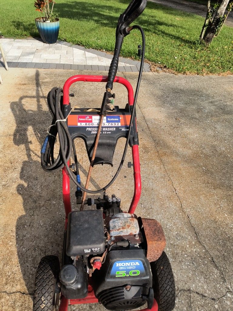 Nice pressure washer, with a good ole Honda engine, starts up every time..too big for what I need at this home , comes with hose and nozzles