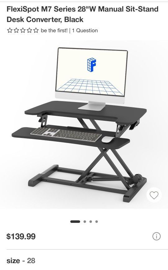 Brand new in box. It retails for $ 139.99 Choose this sit-to-stand desk riser to help stretch your legs throughout the workday. The desk riser is made of strong and dependable steel and features a built-in keyboard tray. The standing desk riser's platform can be adjusted to 19-3/4"H, helping you keep screens at eye level. Strong steel construction. Offers a built-in keyboard tray. Grommet hole allows you to add a FlexiSpot single- or double-monitor arm. Check out my other listings, including Lego