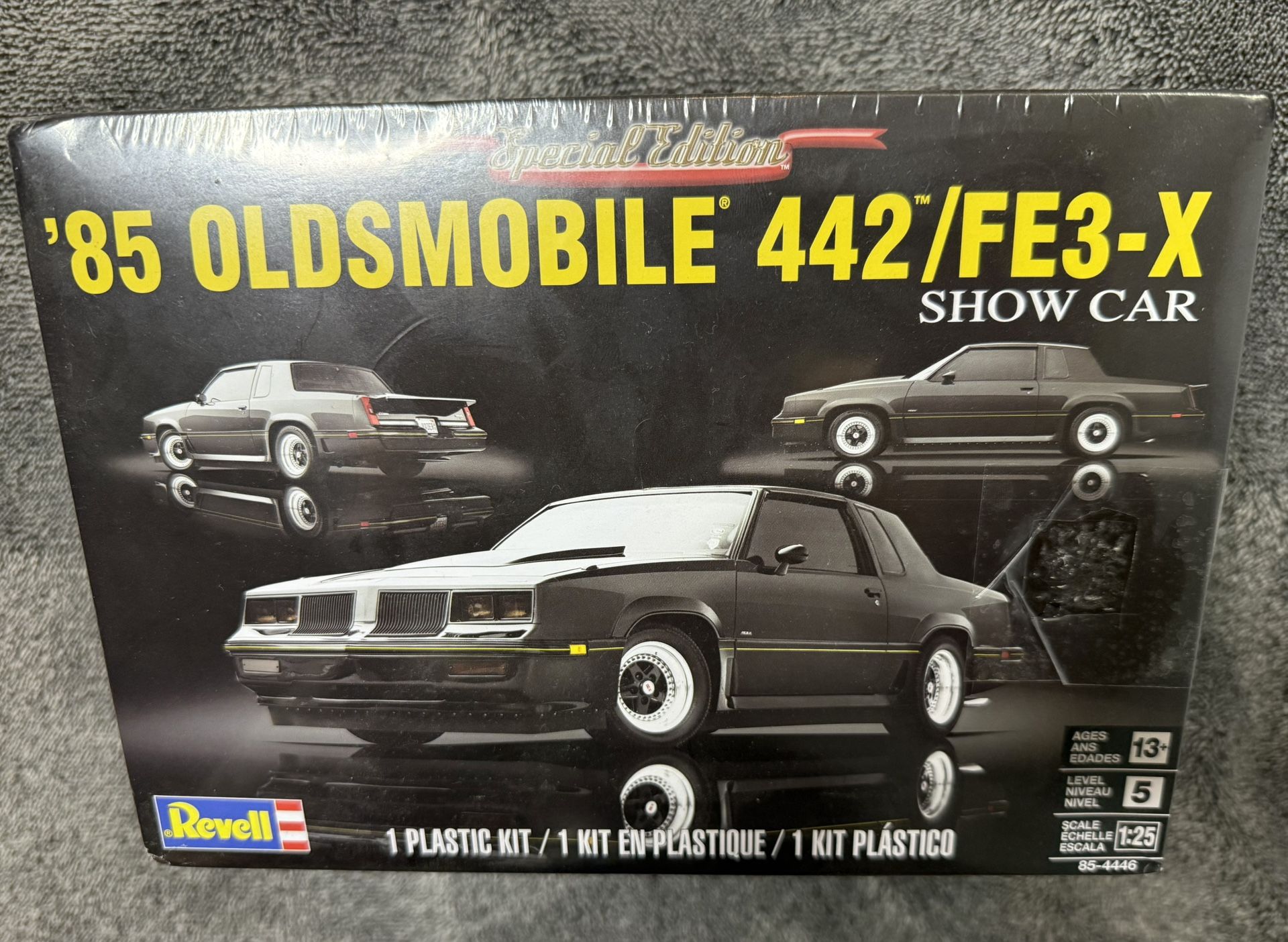 Revell '85 Oldsmobile 442/FE3-X Show Car 1/25 Scale Plastic Model Kit BRAND NEW SEALED! Model: 1985 Oldsmobile 442/FE3-X. Scale: 1:25. Features: Detailed small block V-8 engine, soft black tires, and chrome-plated parts. Skill Level: 5 (Recommended for ages 13 and up).
