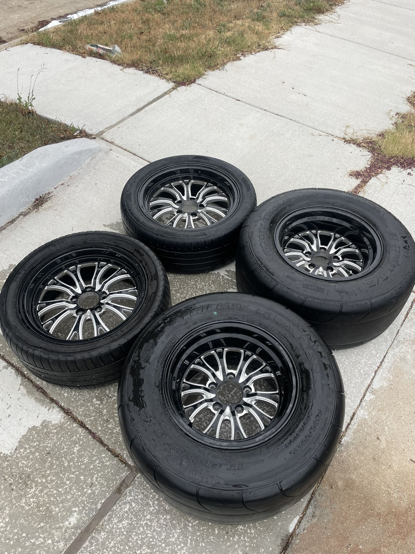 17x7 front wheels 15x10 rear (4.50 offset) Fits fbody, s10, Camaro, Chevelle, nova 5x120 as well Will listen to trades $800 obo