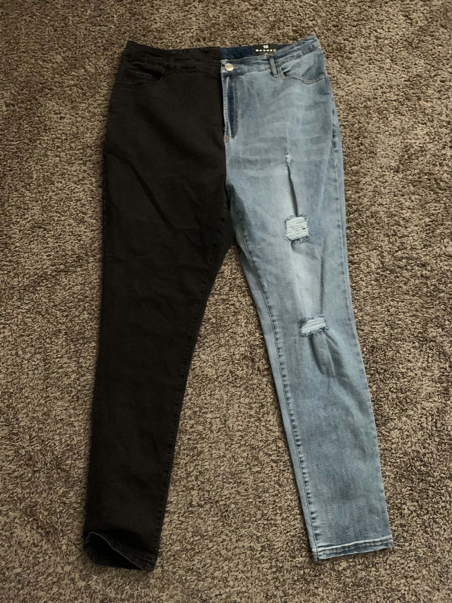 Size 16 - High Waisted Ripped Knee Mom Jeans - (NWT) Duo Jeans - Black And Light Blue