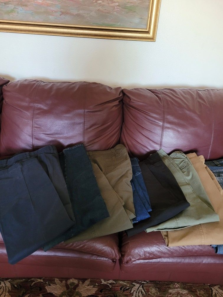 Different colors and styles of men pants majority size 40 waist and between 32and 33 in length. Buy more pairs will give you a deal $10 each obo