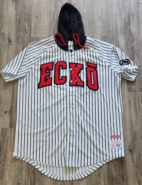 Ecko Unltd Vintage Hooded Stripe Embroidered Baseball Jersey RHINO Mens 2XL