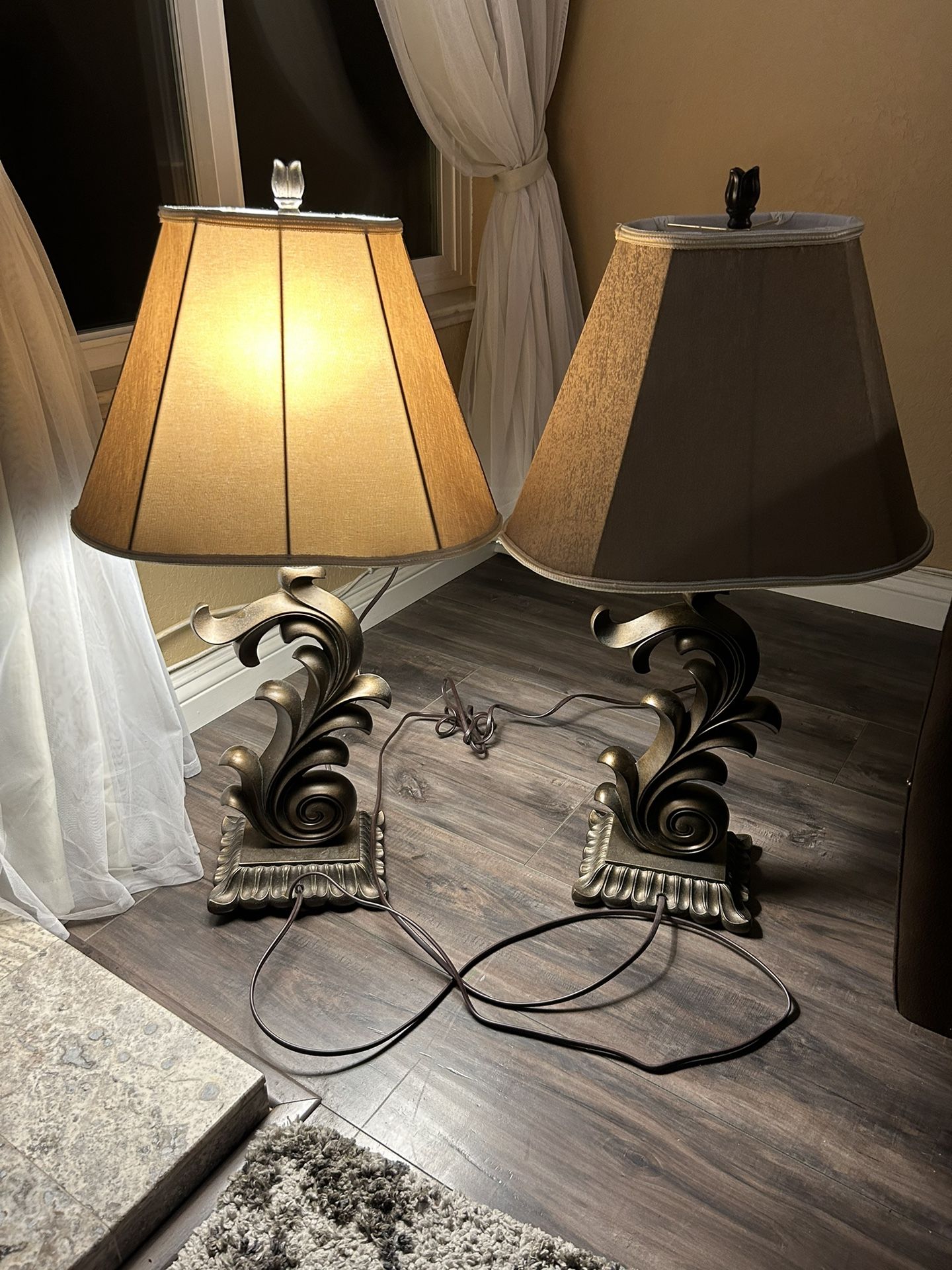 Set of two lamps in good condition. 31” tall 6x8” base.