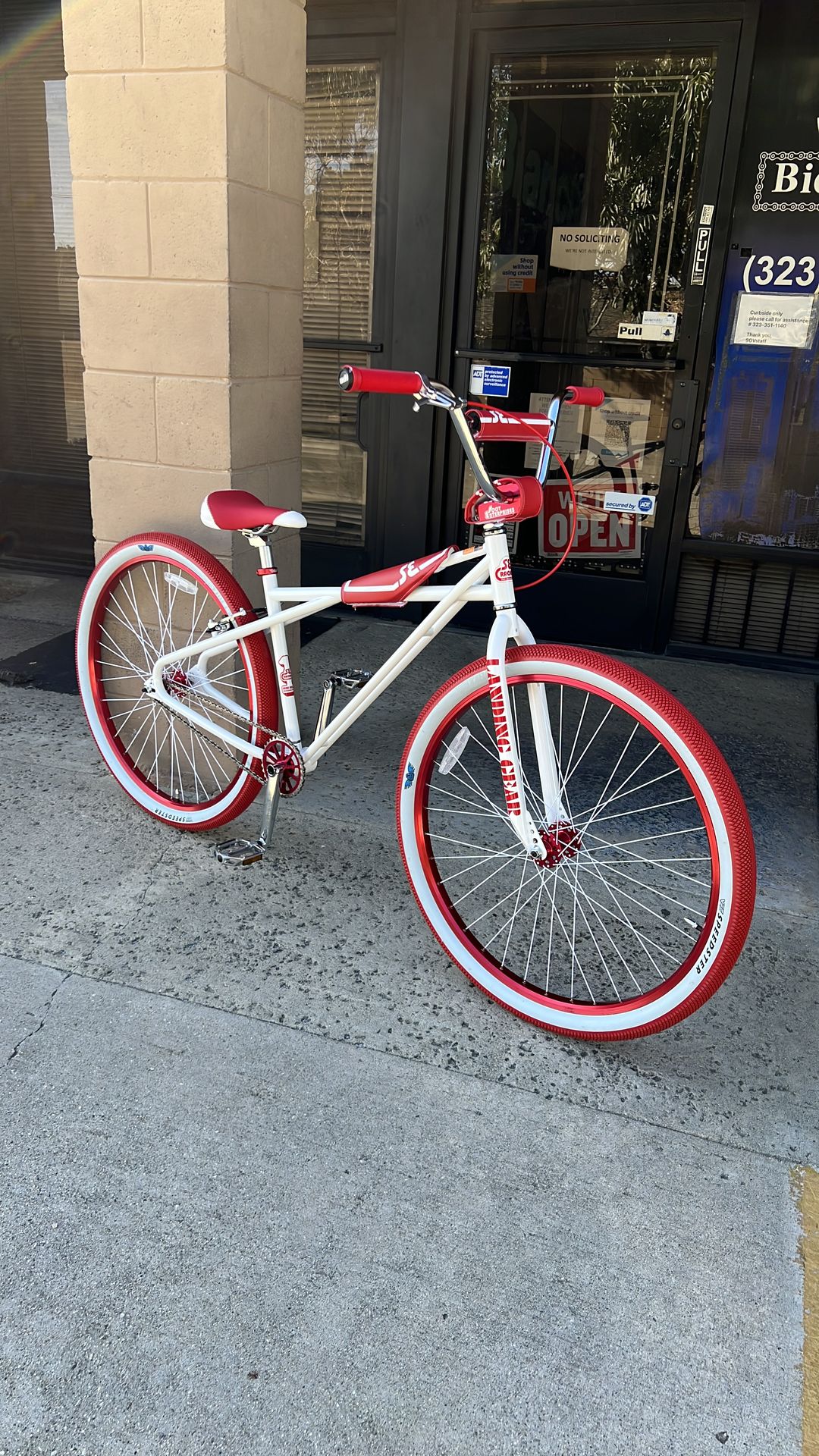 SE Bikes Quadangle Looptail 29 SPECIFICATIONS Color(s) Sterling Silver Frame 100% Cr-Mo Tubing, Classic Double Downtube Design, Looptail Rear End, Retro Dropouts, Limited Edition & Individually Numbered on the Inside of the Rear Dropout Fork Landing Gear, Full Cr-Mo Crankset SE V-Ridge 3-pc Cr-Mo Cranks, 175mm, Sealed American Bottom Bracket, 160mm Spindle Length, 19mm Spindle Diameter, 33T Alloy SE Racing Sprocket Pedals SE Racing Beartraps Chain KMC S1 Wheelset SE Mohawk Flip Flop Hubs, 36H High-Flange Alloy, w/ Double-wall Rims, 15T Freewheel, Stainless Spokes Tires Vee Tire Co x SE Racing Speedster, 29" x 2.10" Front & Rear Brakeset Tektro 855AL V-Brake, Linear Cable Brake Levers Tektro 316A, 2-Finger Alloy Headset Tange 1-1/8" Threadless Handlebar Cr-Mo Power Wing Cruiser Bar, 28" x 7", 12° Backsweep, 1° Upsweep Stem Retro Alloy Top-Load w/ Engraved SE Logo on Top & Sides, 55mm Reac Grips ODI Longneck, Flangeless, w/ ODI Rubber End Plugs, Made in USA Seat SE Flyer Seat w/ Custom SE Bottle Opener Brace Seatpost Micro-Adjust Alloy, 27.2mm Seat Clamp SE Racing Champ Clamp, Alloy, 29.8mm Inner Diameter Accessories SE Racing Padset, Alloy Valve Caps Weight 31.6 lbs / 14.4 kgs