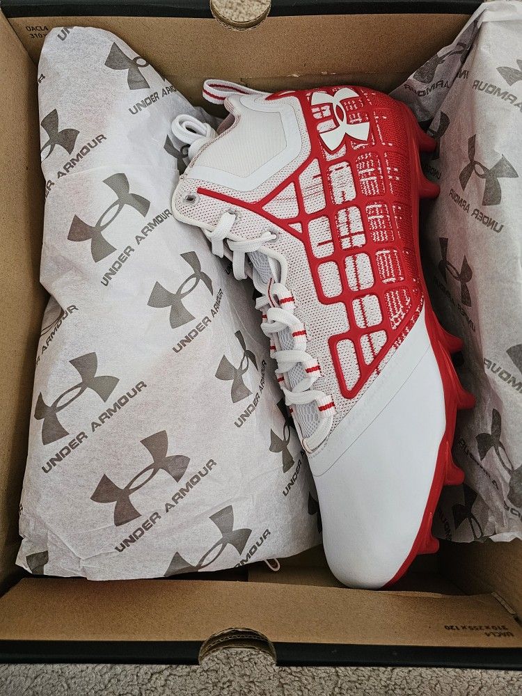 Under Armour Banshee Mid MC Men's Lacrosse Cleats, Red/White, Size 11.5