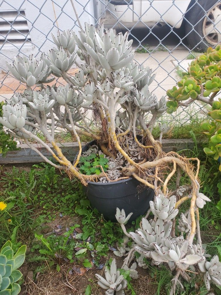 Large and fully mature Kalanchoe Tomentosa "panda" succulent plant. Loves the sun and drought resistant. In a 2 gallon plastic pot.