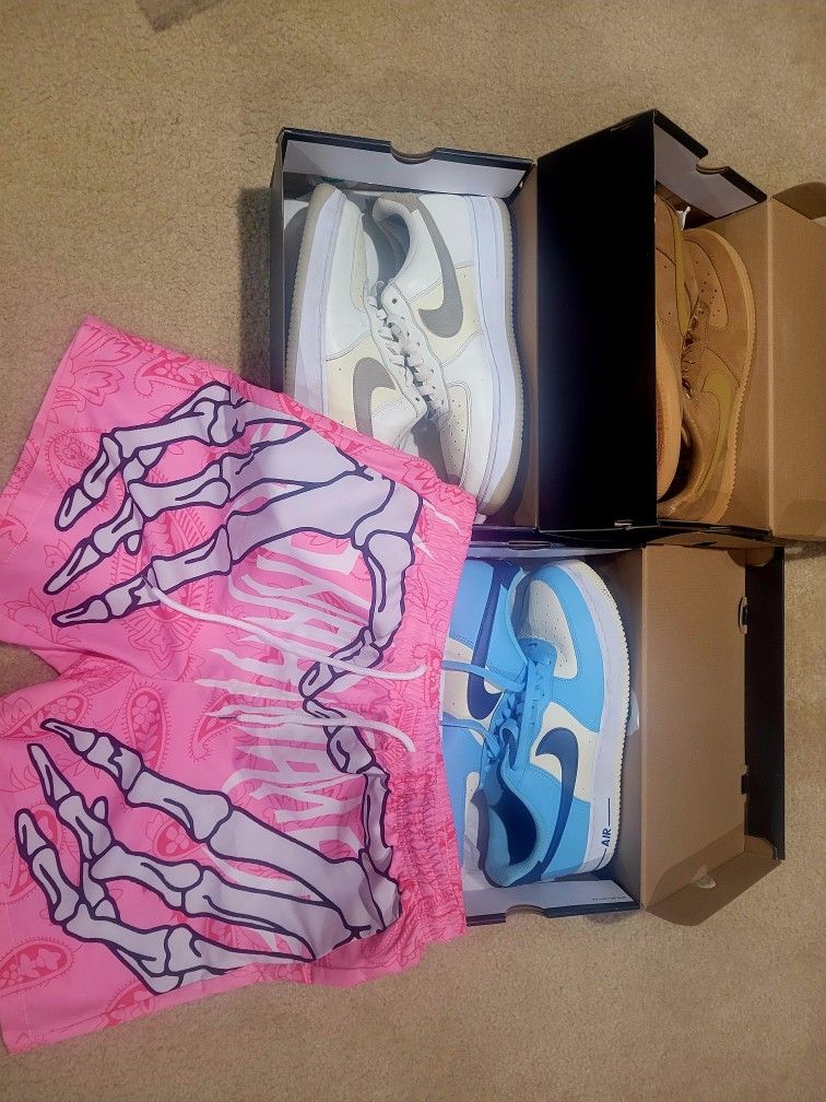 Selling 3 pairs of Nike Air Force 1s β all clean and well-kept π π Blue/Cream Pair: like new, barely worn π€ Wheat/Flax Suede Pair: new condition, perfect fall colorway π€ White/Cream Pair: lightly worn, still super clean All authentic and stored in boxes. Can sell together or separately: $70β$110 each $220 for all 3 Message if interested or want more pics!