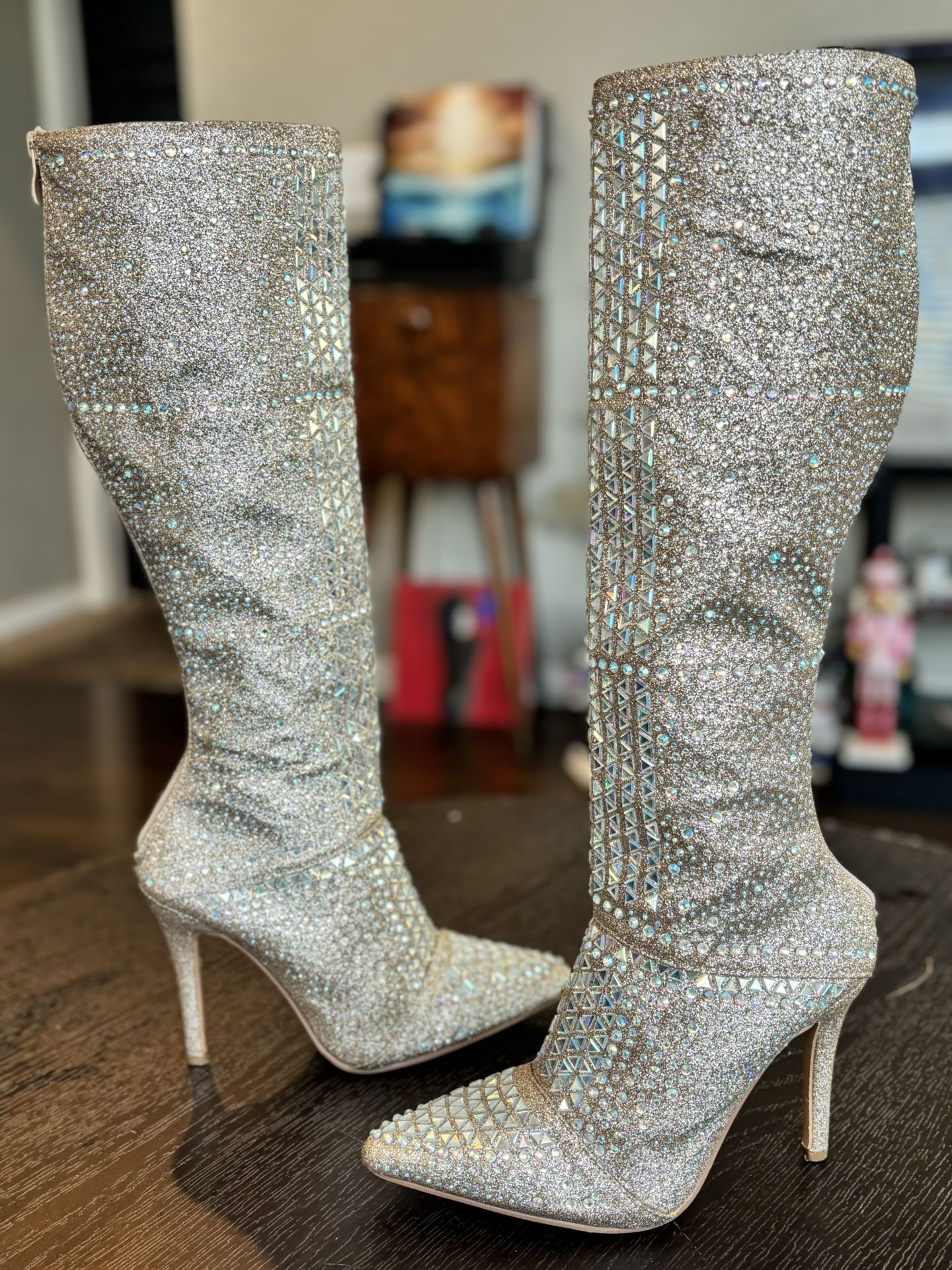 Cute Rhinestone Knee-High Holiday Boots 6.5