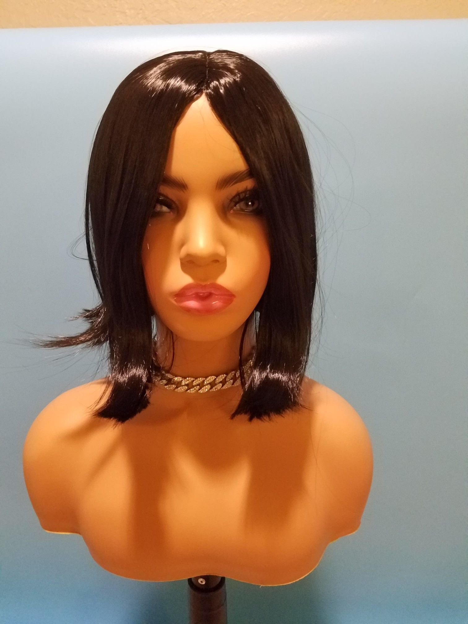 PRICE IS FIRM BRAND NEW Excellent Premium Quality HEAT RESISTANT Japan Synthetic Fibre Wig. With a wig-centering design, It was made of high temperature wire, Therefore, it can be straightened by hair sticks. You will be amazed by the quality. Wearing it, it can bring you more confidence, and more charm! It is both natural looking and soft touch. You can wear it to parties as well as for daily use. The size is adjustable and no pins or tape should be required. It should be fit on most people. All you should need to do is adjust the hooks inside the cap to the correct size to suit your head. The item is Easy to wash and care just using a little mild shampoo in cold water. This wig features a high-quality "skin top", which gives the wig a look of naturalness and reality. You can cut or trim the wig into any style you like. Specification: Hair Material: Premium Quality HEAT RESISTANT Japan Synthetic Fibre Color: As Picture Show Hair Cut: Without Bangs Hair Style: Straight Hair Length: 12"(+/- 1" ) Cap Size: This wig comes with the elastic strap. Fully ADJUSTABLE to fit all sizes Package Included: 1 x Wig Important Information - Please, Read Before Buy A. Color: COLOR that appears on your monitor could vary from the original color of the wig due to different MONITOR SETTINGS. B. Approx. Length: The length on a hairpiece will appear differently on person to person. Depending on the person's head, face size, face shape, and neck measurements the length can appear longer or shorter. Please pay close attention to the approx. length on each wig. JF3318