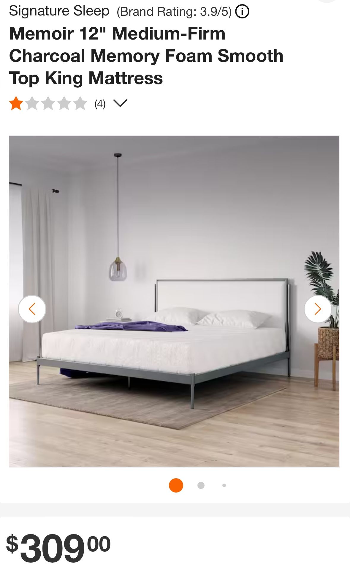 Signature Sleep Memoir 12" Medium-Firm Charcoal Memory Foam Smooth Top King Mattress
