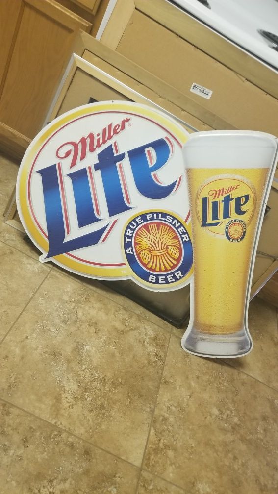 Rare Miller light tin sign. 36X36 80 ob0 Beer, beer sign, beer neon, sign, neon, mirror, beer mirror .