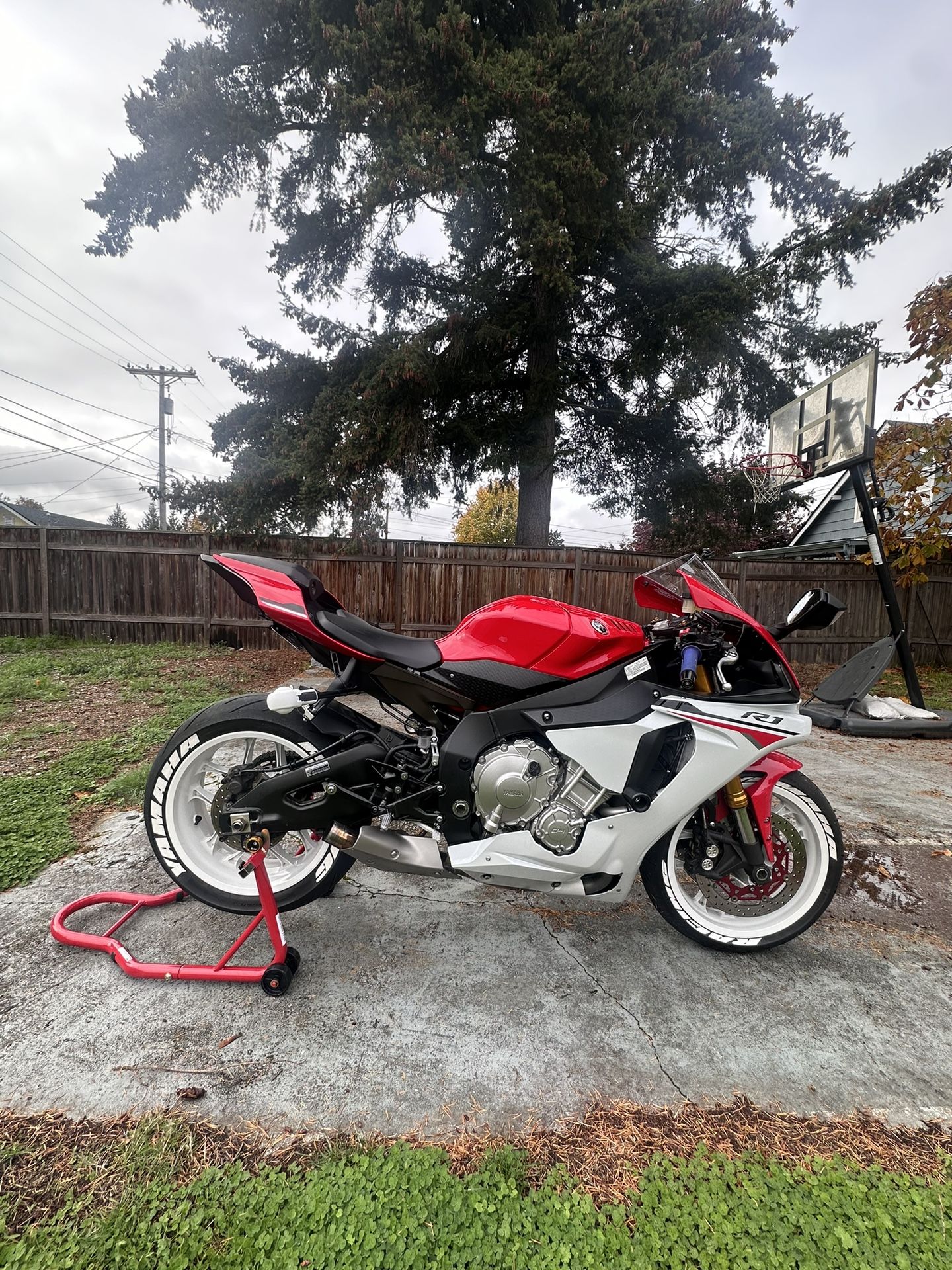 Yamaha R1 for sale! Comes in mint condition, no scratches, garage kept! Powder coated wheels (white) New Tire stickers New Midpipe (Gold) New Power commander New Grips (Blue) New Bar ends (Black) New Stator New Battery New Rear Spools (Gold) New Smoked Taillight (Black) New VF Intergrated tailights installed Well maintained Great sounding Strong motor Ready for a new owner! 2015 Yamaha R1 Rapid Red & White 11k miles Clean Title Never laid down/Dropped No joy rides , *MUST have endorsement and cash in hand for test rides* $16,000 or obo (Price negotiable)