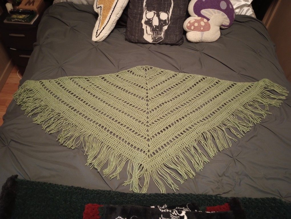 I hand made the shall and headband with the same yarn color to match, 15 hrs roughly to make shall and 1 1/2 hrs for headband. Size of headband ~20-23in.