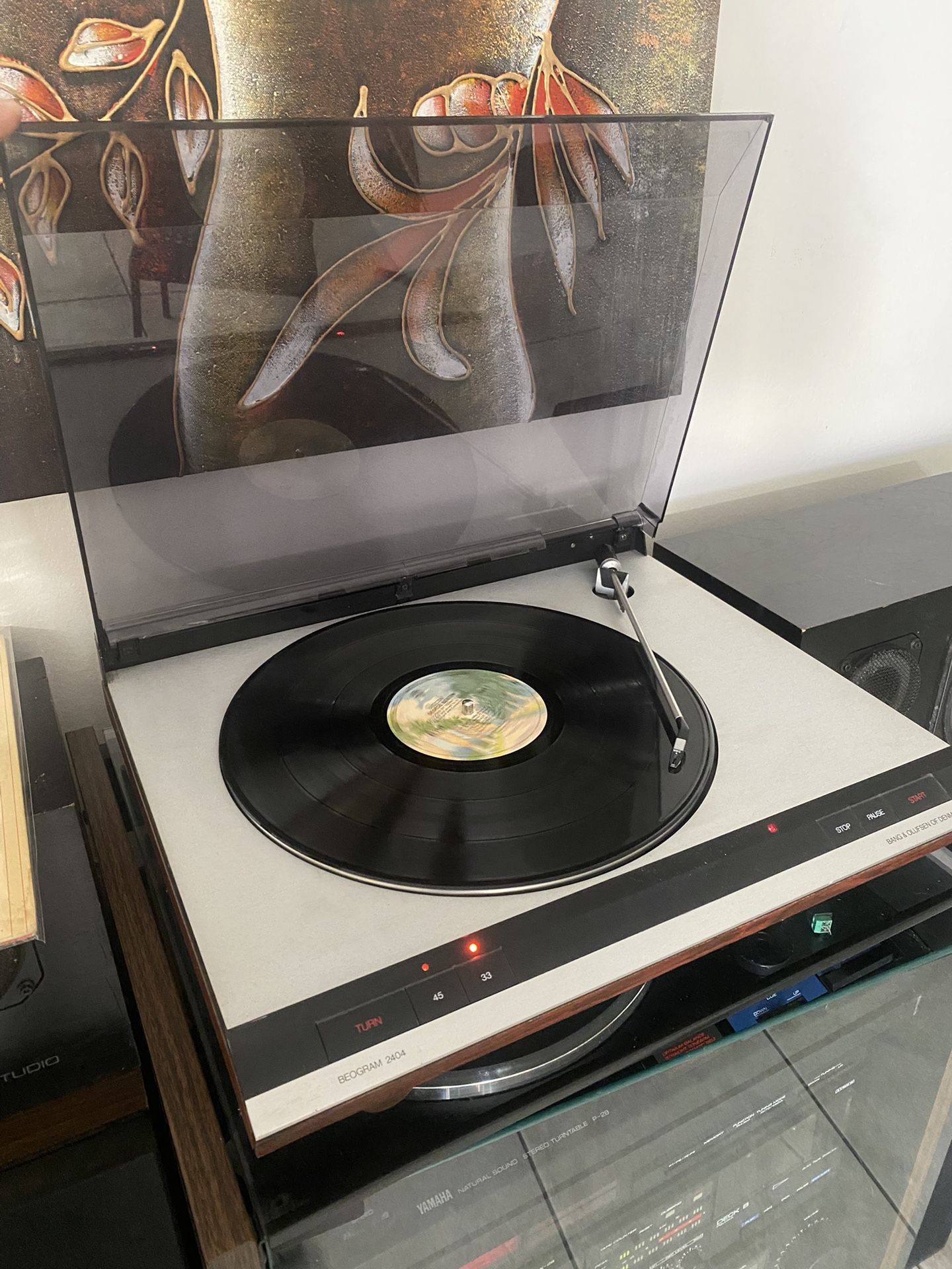 Vintage turntable Bang & Olufsen Beogram 2404 – Iconic Danish Design Classic from 1980s In pristine condition — the aluminum body and dust cover (dust cover) are flawless, no scratches, no wear, looks factory-fresh. European build quality from the golden era of B&O. Comes with the original MMC4 cartridge (moving micro cross, elliptical diamond stylus) — fully functional, sounding rich and detailed, no replacements or mods. Pure vintage B&O magic. This isn’t mass-market hi-fi. It’s for those whose life has turned out just right — who appreciate exclusivity and take their time. Picture this: dim lights, a glass of fine wine in hand, a jazz record spinning (Miles Davis, John Coltrane, Bill Evans — your choice), and this elegant linear-tracking turntable delivering music with effortless precision. No rush, just pure immersion. Beogram 2404 isn’t just a turntable. It’s a ritual for those who listen deeply. Price: $229 Pickup in Los Angeles / careful shipping within the US possible. DM for more photos, video demo of it playing. No hurry — the best things reward patience.