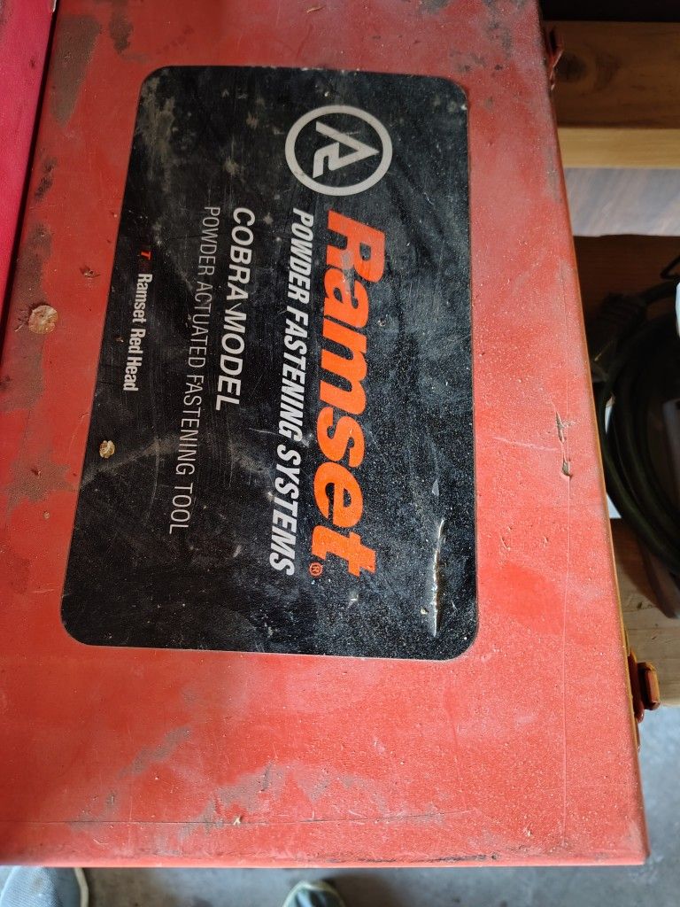 Industrial Ramset Powder Fastening System. Cobra model. Has a metal carrying case. Uses RS27 10 Shot Strip Load. Refer to photos for usage. Serious Byers only.