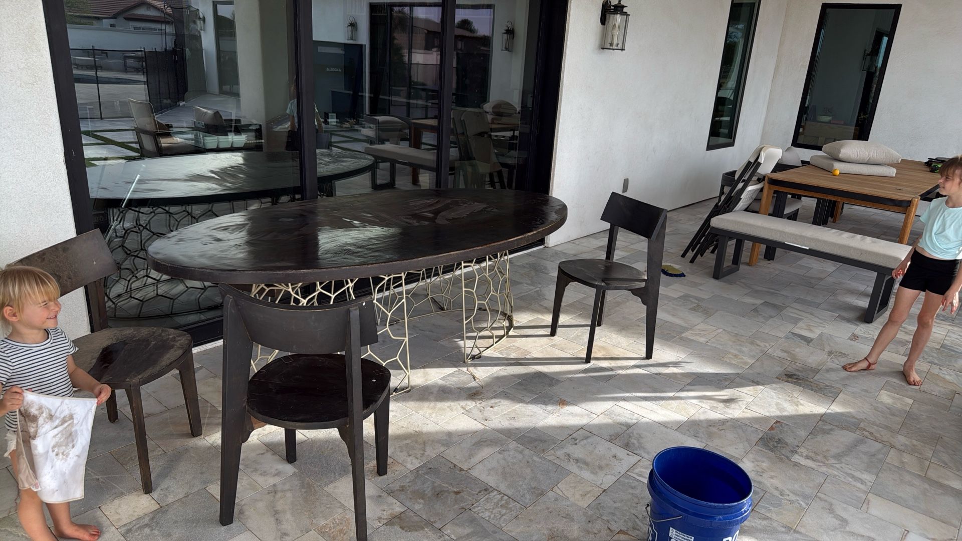 Comes with table, bench and three chairs