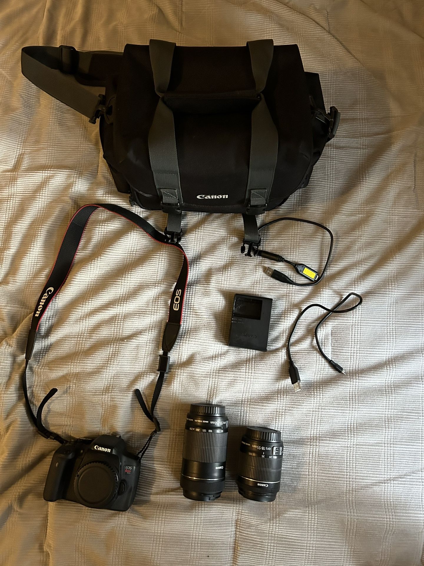 Canon EOS t6 55-250mm lens 18-55mm lens Battery with charger Travel bag