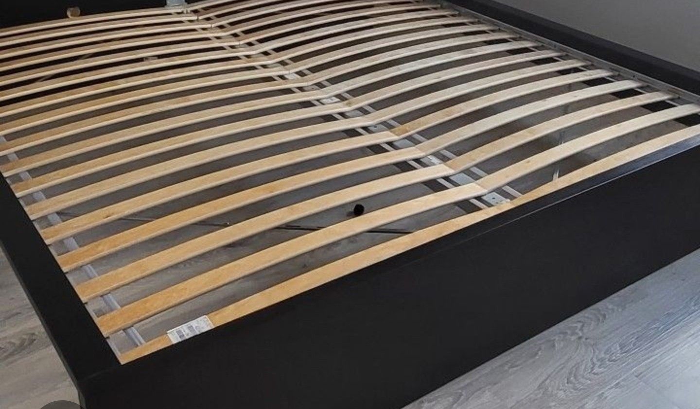 King size Ikea malm bed frame with wood slats to support the mattress. In good condition. Already disassembled and ready to go.