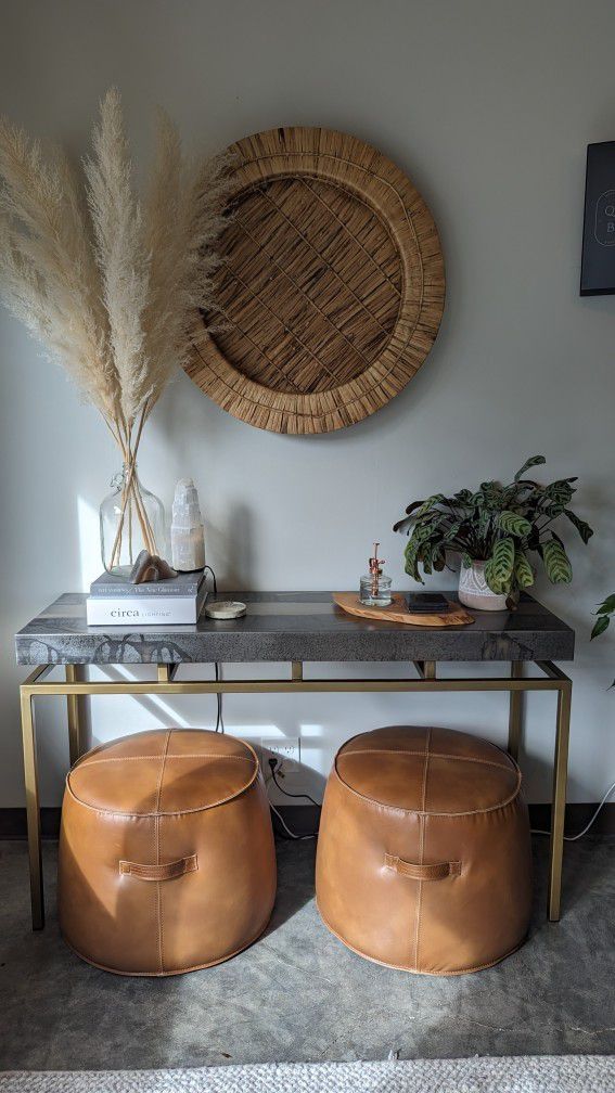 SHOWROOM FLOOR MODEL (very light wear and tear, almost new condition) A traditional design comes to life with elements inspired by global travels. This console table is crafted with an iron top featuring a supernatural patina finish with an antique brass base. With refined craftsmanship, this design was brought to life by skilled artisans in India. By nature, these materials develop unique imperfections such as markings and color variations for a truly one-of-a-kind piece. Local delivery can be arranged. DIMENSIONS: 52” W x 16” D x 30” H CONDITION: Like new — MSRP: $1,350 SALE PRICE: $900