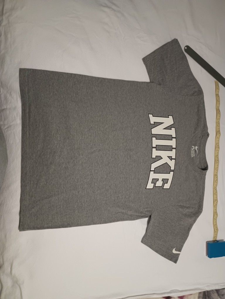 Simple gray shirt with bold white lettering, size Medium, made of 20% Polyester and 80% Cotton.