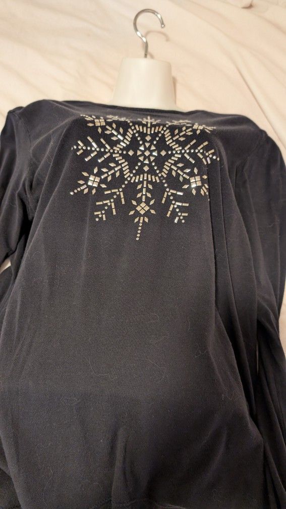 Talbots Size Small Black/Studded Silver Snowflake Top