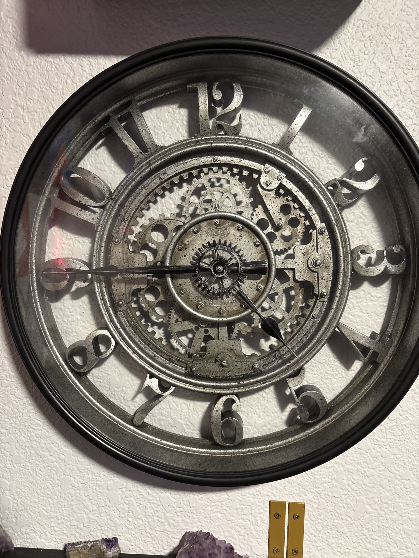 Large industrial style wall clock with visible gears