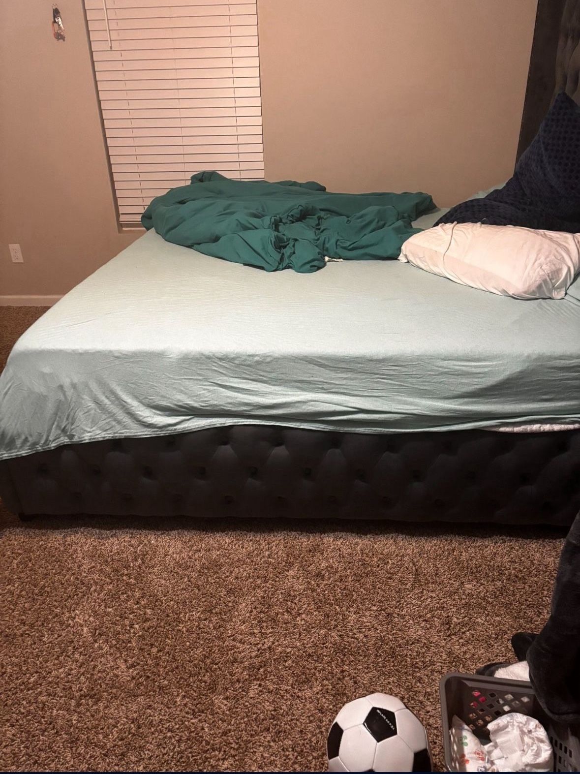 Grey velvet king bed frame will need more screws used still in good condition NO RIDICULOUS OFFERS ONLY MESSAGE WHEN READY TO PICK UP