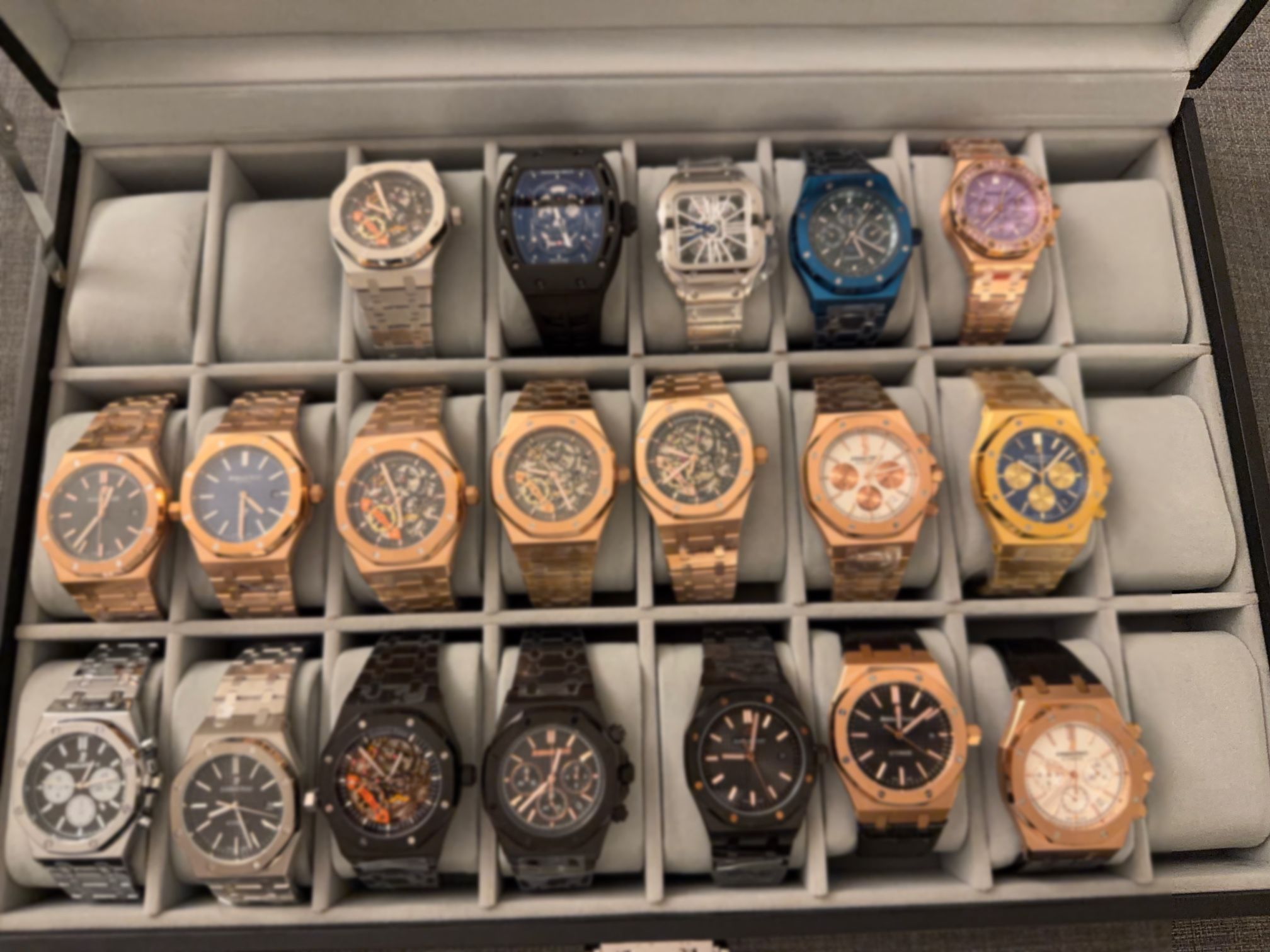 Stainless steel, sapphire crystal, Swiss automatic movement, and water-resistant. Prices start at $250 — varies by model and style. Message me for details or more pics! Watch videos of our collection 🎥 IG: @ocluxuryco