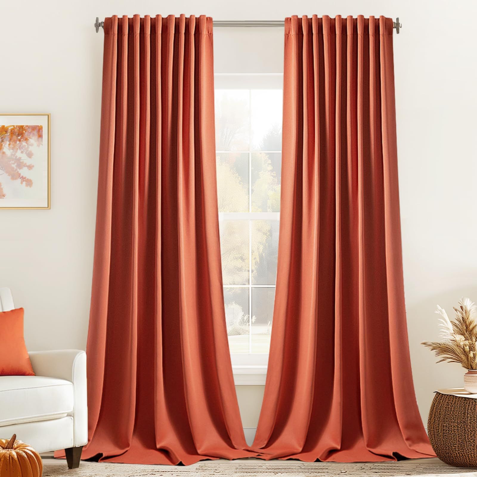 MIULEE Back Tab Burnt Orange Blackout Curtains 96 Inch Long 2 Panels Set for Bedroom, Fall Terracotta Rod Pocket/Pinch Pleated Thermal Insulated Room Darkening Light Blocking Floor to Ceiling Drapes Inv # 10(contact info removed)8