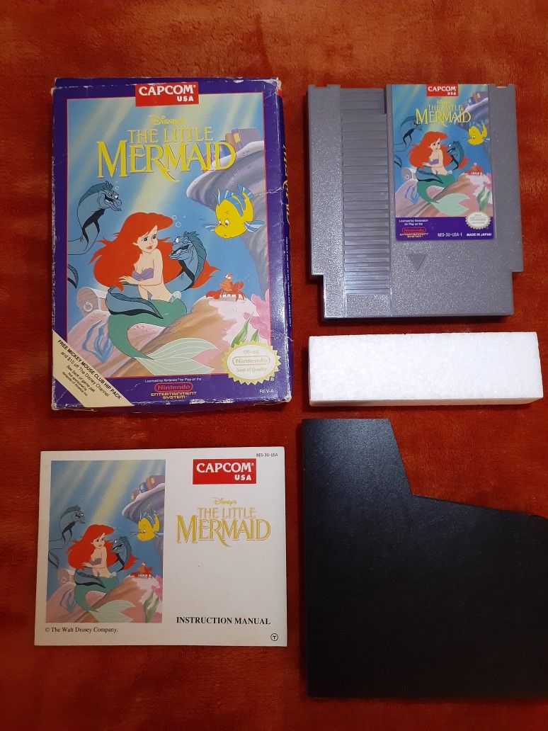 WALT DISNEY 1991 CAPCOM UNDER THE SEA SOUNDTRACK Here is an original copy of Disney's The Little Mermaid for the Nintendo Entertainment System. Game cartridge, manual, sleeve, foam block, and box are included. See pics. *This game features the hit song "under the sea" as the soundtrack when you start the game. Awesome sauce!! Capcom was at the top of its game at this time with having the rights to most of the Disney games on the lifespan for the Nintendo. They came through solid on every feature: the graphics, controls, sounds, and box cover art. Outstanding cover!! Get the original. Hard to find these because most people keep them. Game has been cleaned and tested. Feel free and leave a message Make an offer.