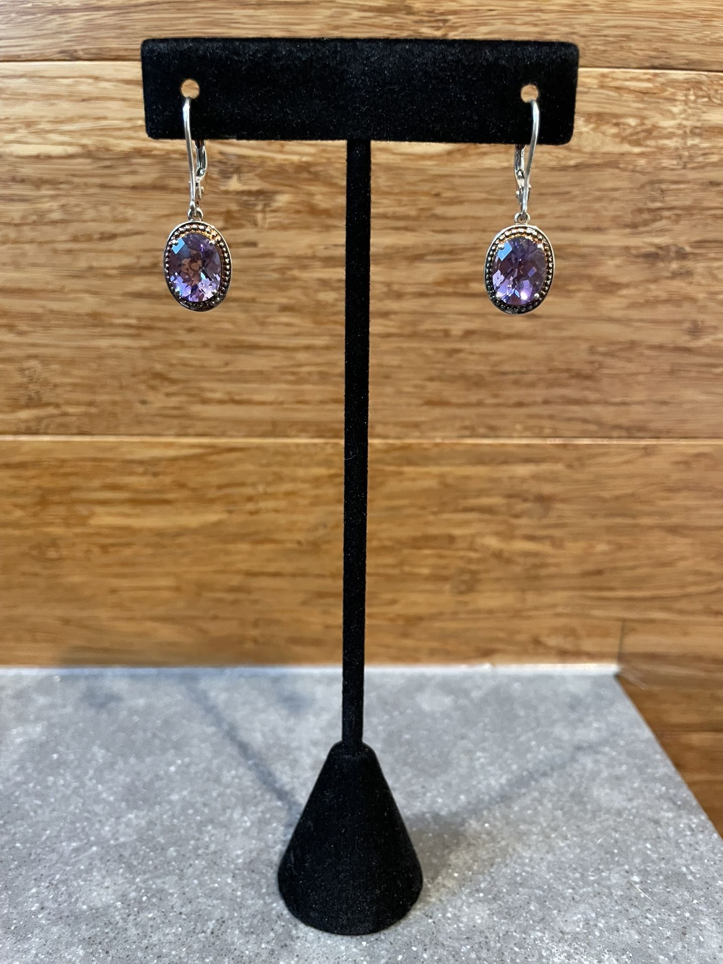 Sterling Silver Amethyst Dangle Earrings. Lever-back.