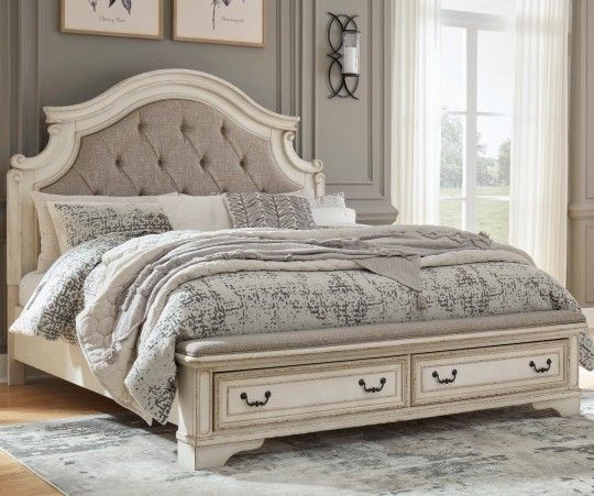 Realyn Chipped White King Storage Panel Bed