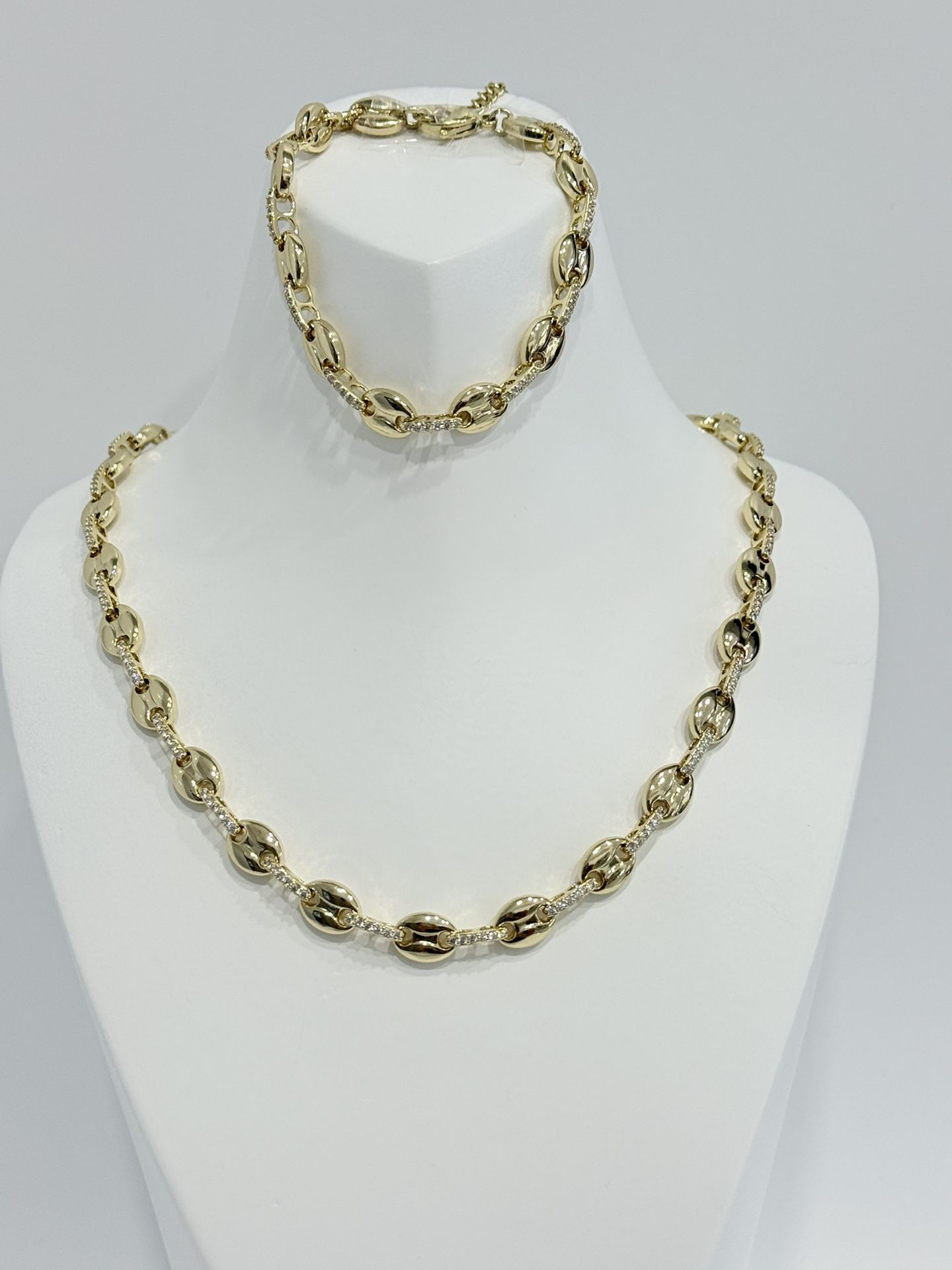 Product Highlights: * This set includes a necklace and a bracelet. * The necklace measures 19.5 inches in length. * The bracelet is 8.5 inches in length. * The set is described as "beautiful." * * * π Details at a Glance: The set features a necklace and a bracelet, both noted for their lengths: the necklace at 19.5 inches and the bracelet at 8.5 inches. The term "beautiful" is the only descriptor provided, suggesting an aesthetic appeal. No additional features, materials, or qualities are specified in the given information. * * * π Material Note: The set is 14k gold-plated, as indicated in the product information. This detail is the only material specification mentioned. No further attributes or benefits are associated with the gold plating.