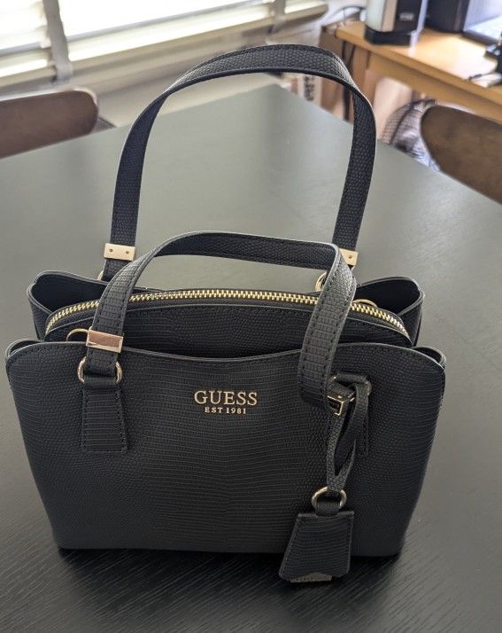 New Women's GUESS Purse. Never been used. Three compartments, small to medium purse, with accessory to make it a shoulder bag.