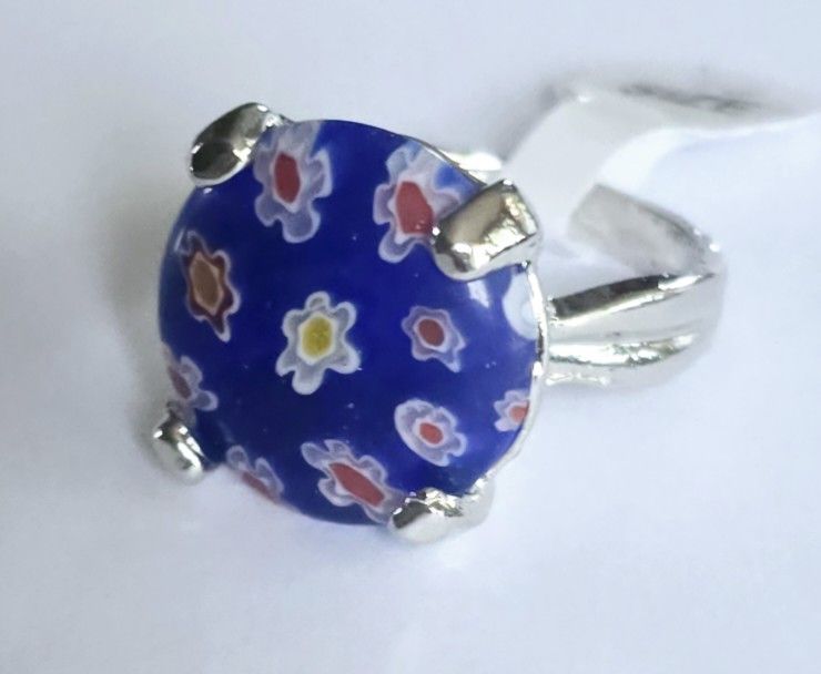 RARE FIND MILLEFIORE MURANO GLASS FLORAL DESIGN NEW SIZE 8 IMPORTED RING
