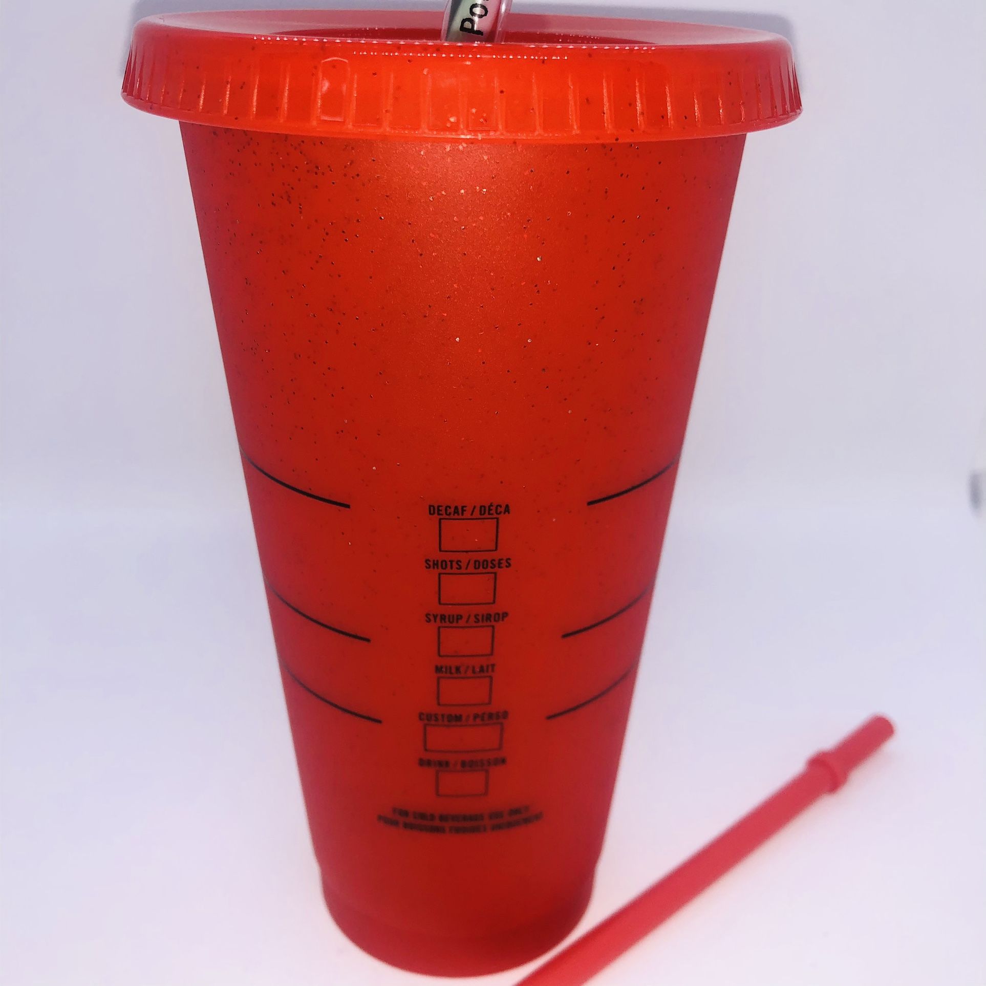 Red Glitter Cup with Red straw only New Reusable Venti - 24 fl oz